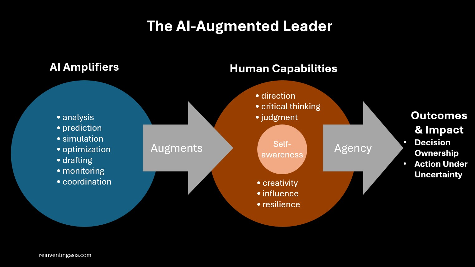 - Agency: Agency is the engine. It is the most critical tool in the AI-augmented leader toolkit because it is the rarest. Many people look like leaders on paper. They have the strategy, the synthesis or the spiffy slide deck. But agency is what separates the people who can explain what should happen, from the people who make it happen. It is the grit to own a decision under uncertainty, knowing the tradeoffs, and doing the unglamorous follow-through when the perfect AI plan hits the messy reality of the physical world.
